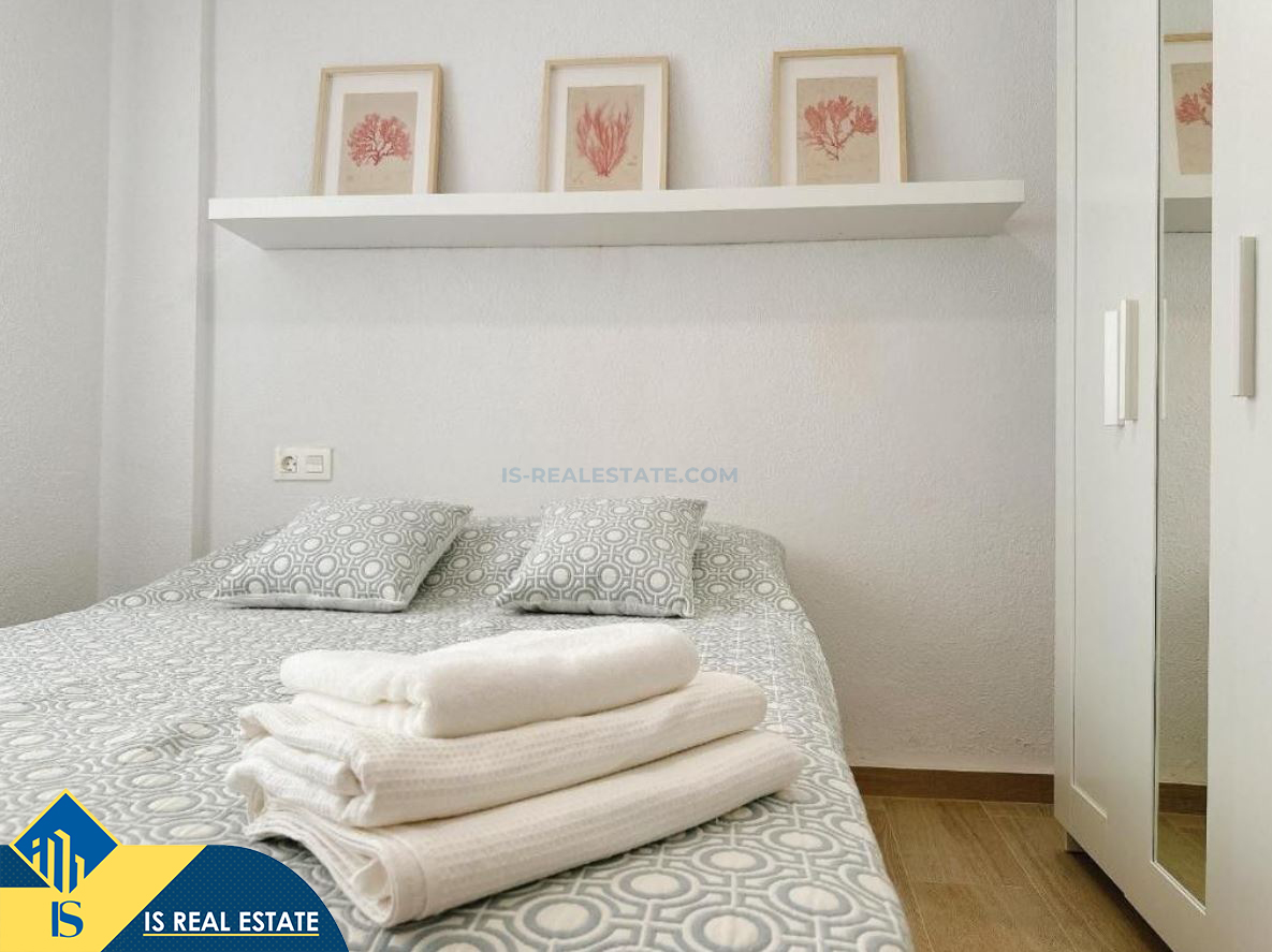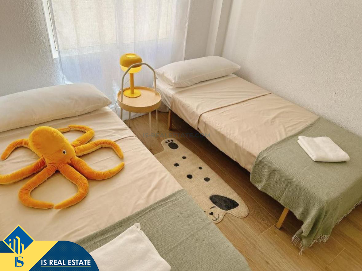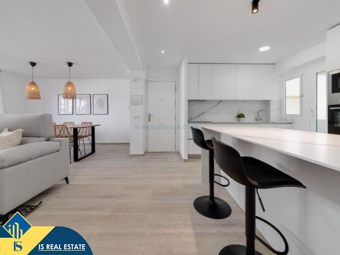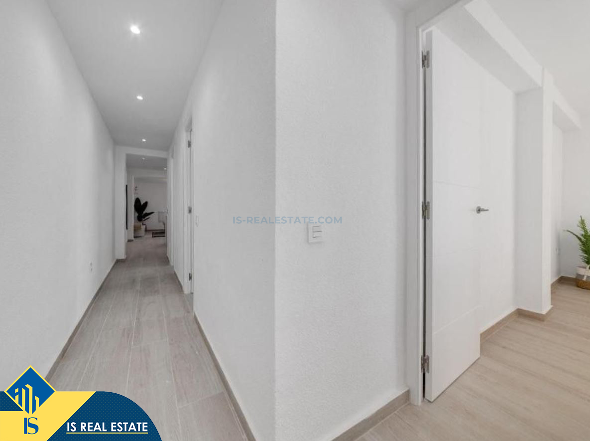 4-ių kambarių apartamentas su terasa, Ispanijoje, Alicante provincijoje, Torrevieja mieste, bendras plotas 104 m², 450 metrų iki jūros, 45 kilometrai iki Alicante oro uosto. Turtui priklauso terasa. Netoli turto yra parduotuvės, restoranai, vaistinės, autobusų stotelės, degalinės, žalios zonos, kavinės